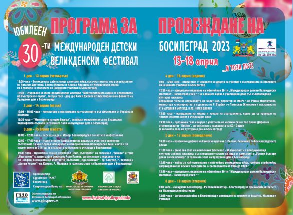 Начална Феситивал 2023Програма за 30-ти международен детски Великденски фестивал Босилеград 2023
